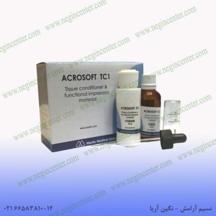 آکروسافت TC “آکریل مخصوص ریلاین نرم موقت” بر اساس کوپلیمر اتیل متاکریلات که پلیمری غیر حساسیت زاست و نرم کننده محلول در الکل طراحی شده است. نرمی ریلاین حاصل از این محصول موجب التیام آزردگیهای ناشی از تماس پروتزهای متحرک و لثه بیمار میگردد. ریلاین حاصل تا مدت ۱۵ روز نرمی خود را حفظ میکند.کاربرد این مواد در ریلاین نرم و موقت پروتز کامل و تهیه قالب های فانکشنال است